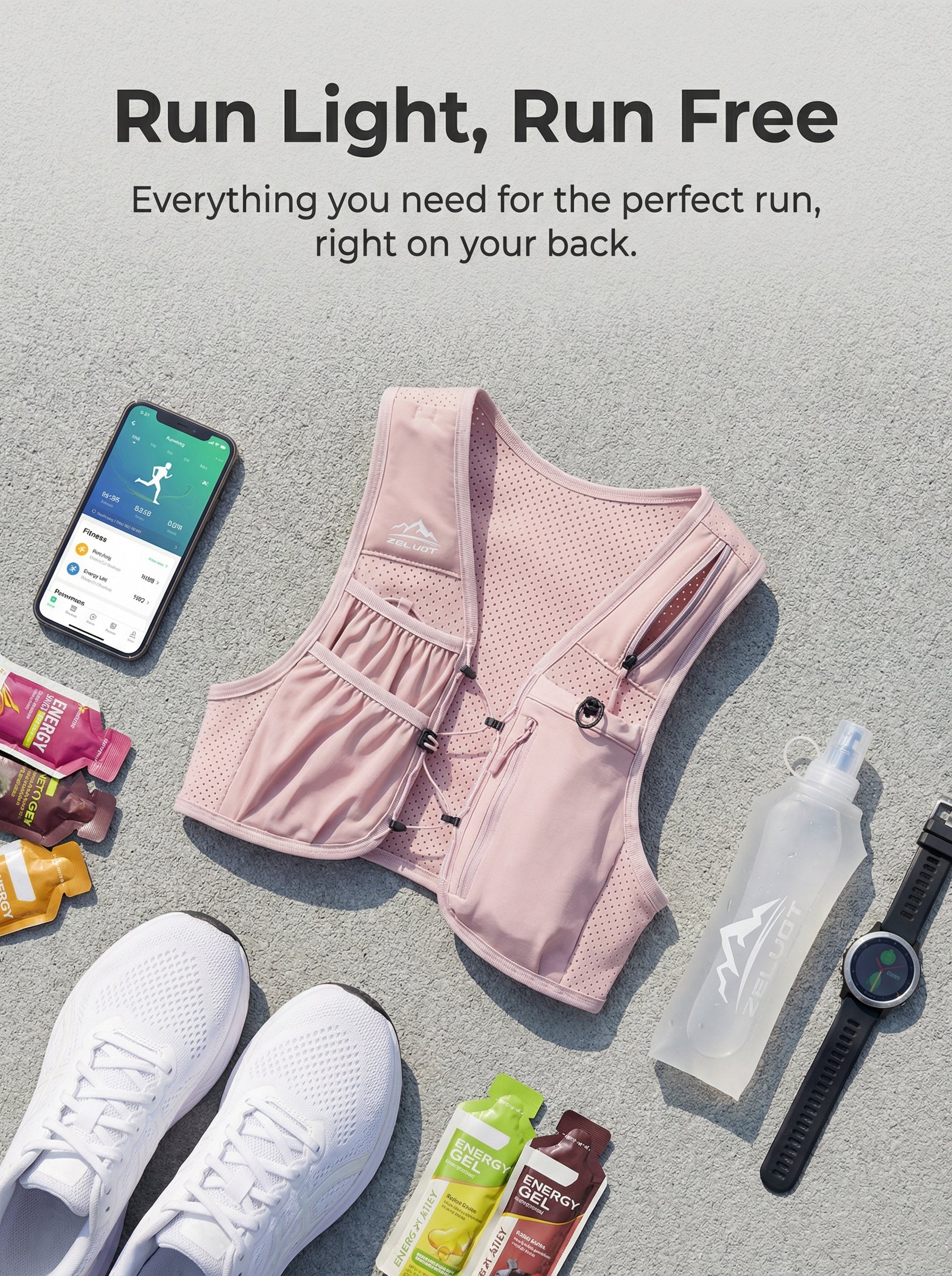 Zelvot | Adjustable Reflective Running Vest: 500ml Flask, USA Patent, Lightweight for Men & Women